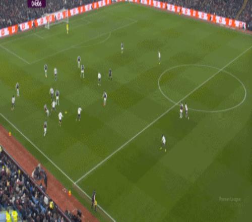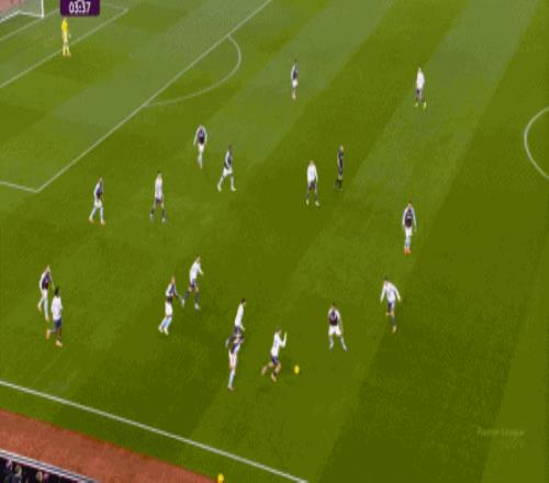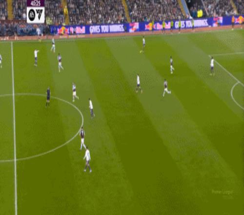 包括第二球也是一样,前戏依旧是维拉吸引曼联压迫,然后用长球连接前场,还是拉出空当之后,由麦金带出转移到弱侧的进攻: