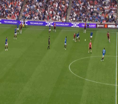 结果芒特没有顶住奥纳纳,麦金可是靠自己的手臂动作顶住了卢克-肖,然后直接斜长传找到了罗杰斯: