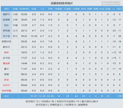 活塞状元坎宁安首发出战40分钟,投篮26中10,三分7中4,罚球2中2,拿到26分4板8助4失误5犯规。上半场坎宁安被锁死,16投5中仅得11分。活塞内线杰伦-杜伦饱受犯规困扰,今天只打了12分钟,7中3拿到7分7板2助5犯规。