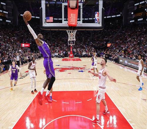 北京时间3月19日,在NBA常规赛,洛杉矶湖人以124-116战胜休斯顿火箭。此役,勒布朗-詹姆斯14投13中,三分球两投全中,罚球3中2,砍下30分。这样一来,詹姆斯也创下了5大神迹。